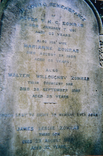 Zohrab, died at Pirie St., Wellington, in 1888 and was also buried in